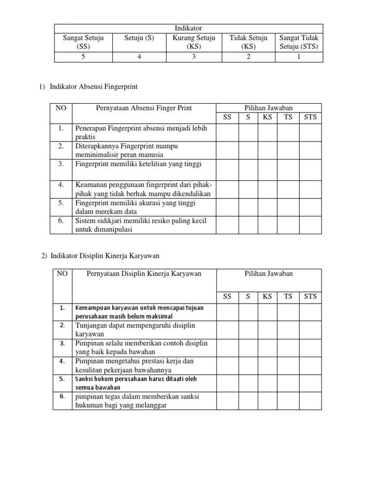 Contoh Kuesioner Penelitian Disiplin Kerja / Contoh Kuesioner Penelitian Skala Likert 6lkven47x204 - Kuesioner disiplin kerja ( ).